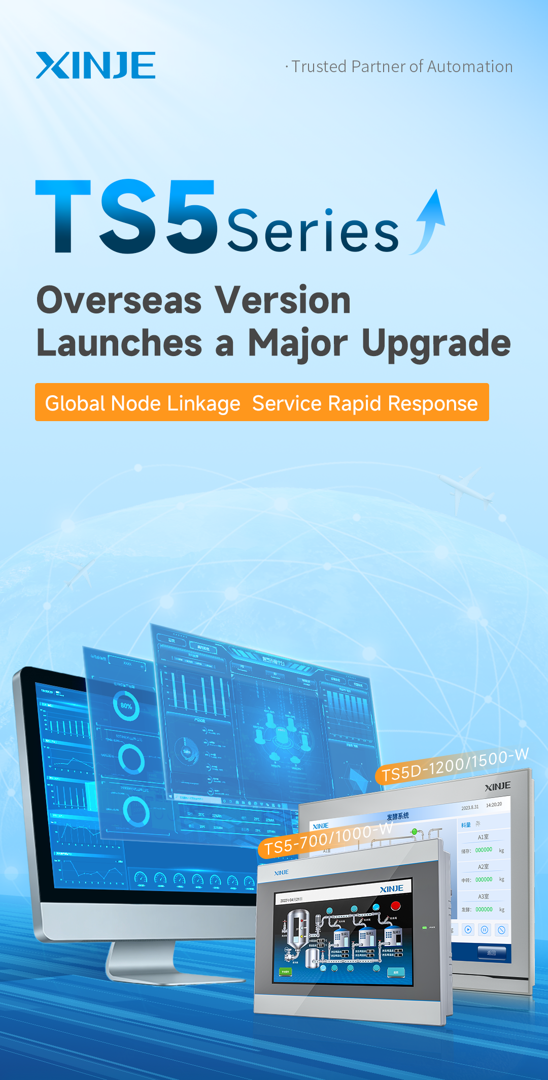 Addressing the core challenges faced by overseas factories—remote operation and maintenance, slow data transmission, weak security, and difficult system adaptation—XINJE officially launches the TS5 Series IoT HMI (Overseas Edition). Powered by a dual-engine approach combining robust terminal hardware with strong cloud server support, it delivers an integrated solution for cross-border manufacturing operations.